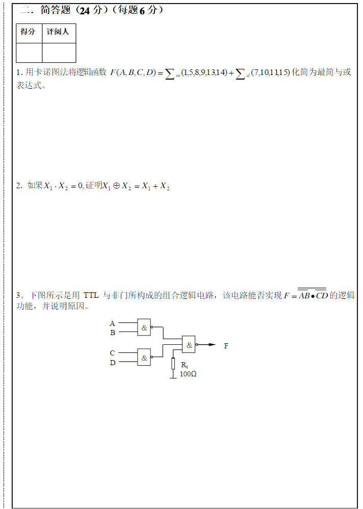 南昌大学2006~2007学年第二学期期末考试试卷 数字电路逻辑设计(2)