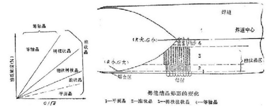 答:根据凝固理论,晶体的结晶形态取决于固液界面前沿液相中的过冷度,即液体金属的实际温度低于其液相线温度的量。焊缝的结晶形态取决于被焊材料的性质和焊接工艺。在焊接参数中焊速是影响结晶形态的主要因素。