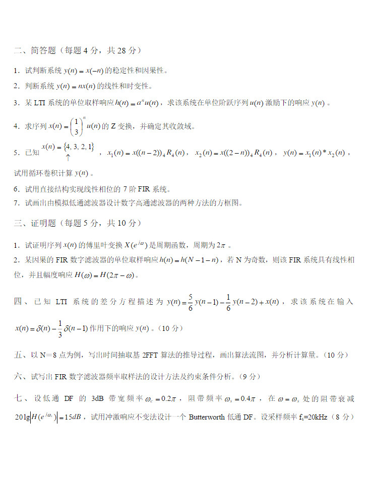 数字信号处理试题 吉林大学(2)