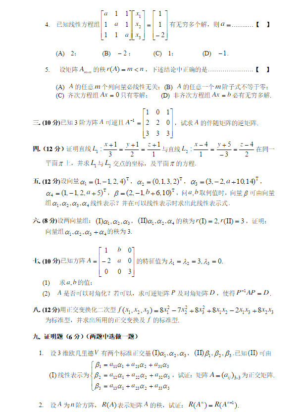 线性代数概率论 本站小编 跨考教育 2015-05-252011年西安交大复试专业笔试