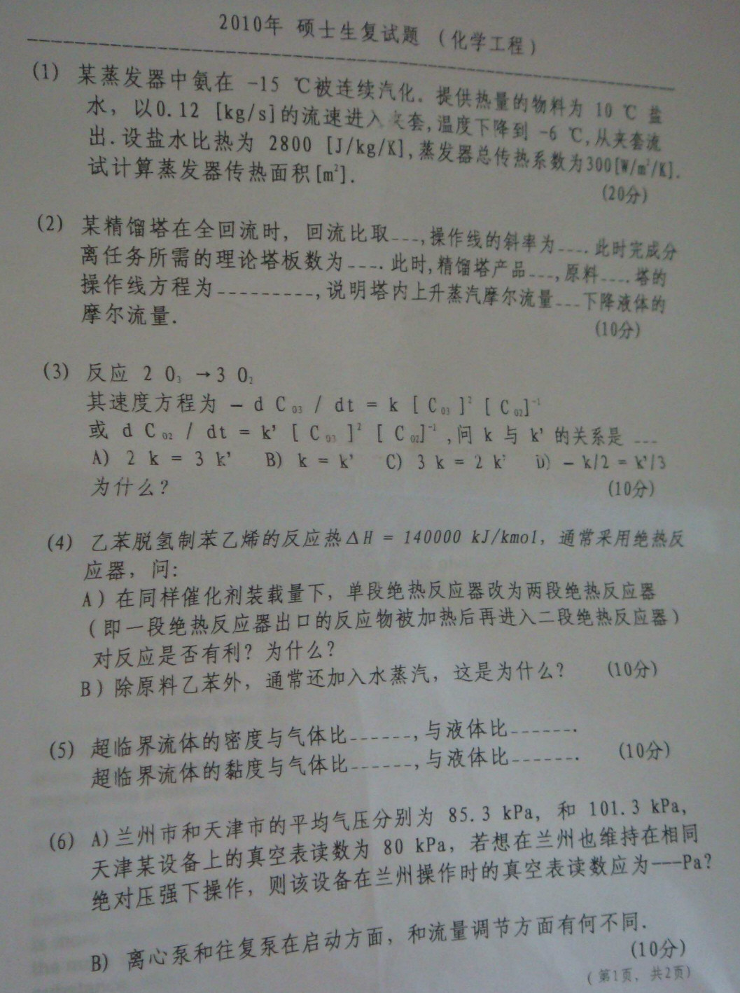 专业课考研资料 本站小编 免费考研网 2015-06-28天津大学化工热力学试题