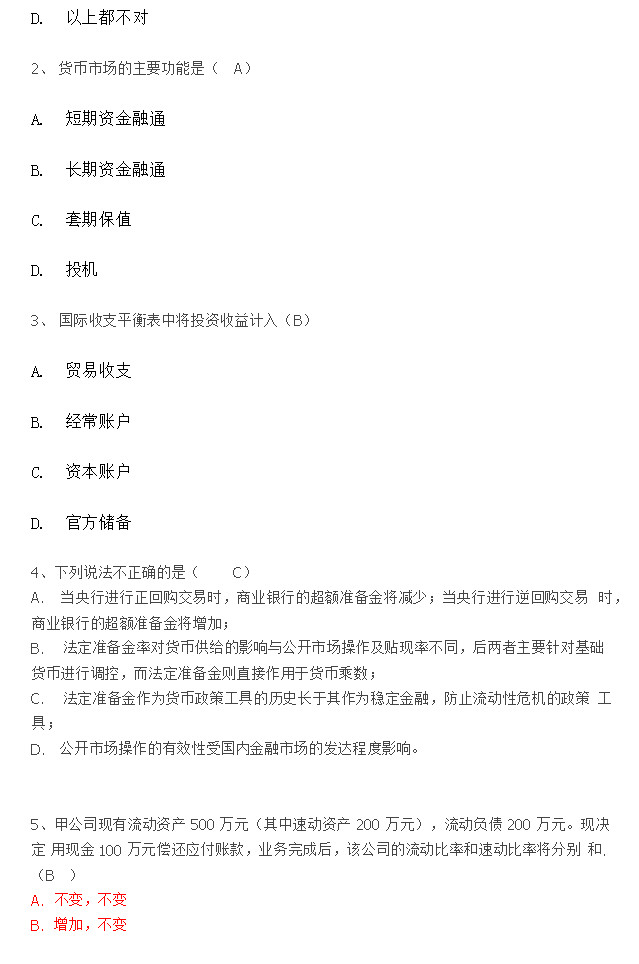 2014年清华大学五道口和经管金融考研真题 选择题30道,每题3分(记不全,顺序打乱了) 1.商业银行的基本功能是 A信用中介 B支付中介 C清算中心 D忘记了 2.银行应该让贷款和哪项的期限机构相适应 AB不记得,大概是存款吧。 C存款和其它负债 D.存款和信托(好像是) 3.美国6个月利率是**,一年期利率是**,半年期远 ...