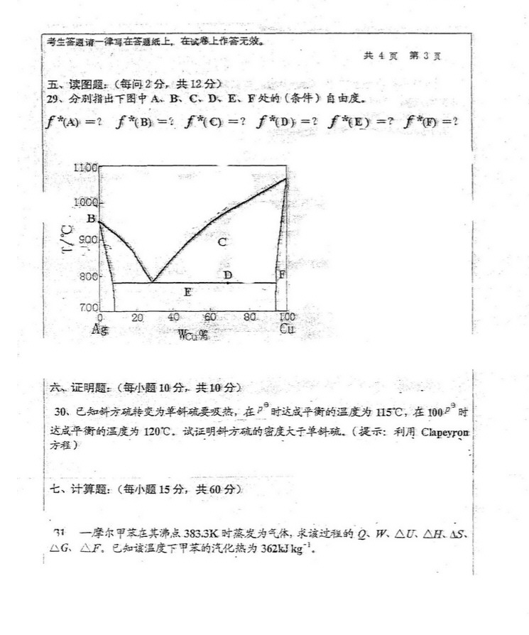 具体哪几个记不清楚了,有4个化学式。第5要求用鲍林规则解释高岭土的结构。(15分)