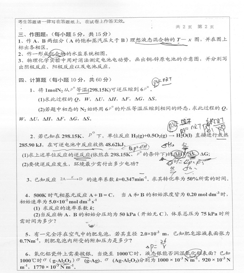 华中师范大学物理化学2010考研真题(2)