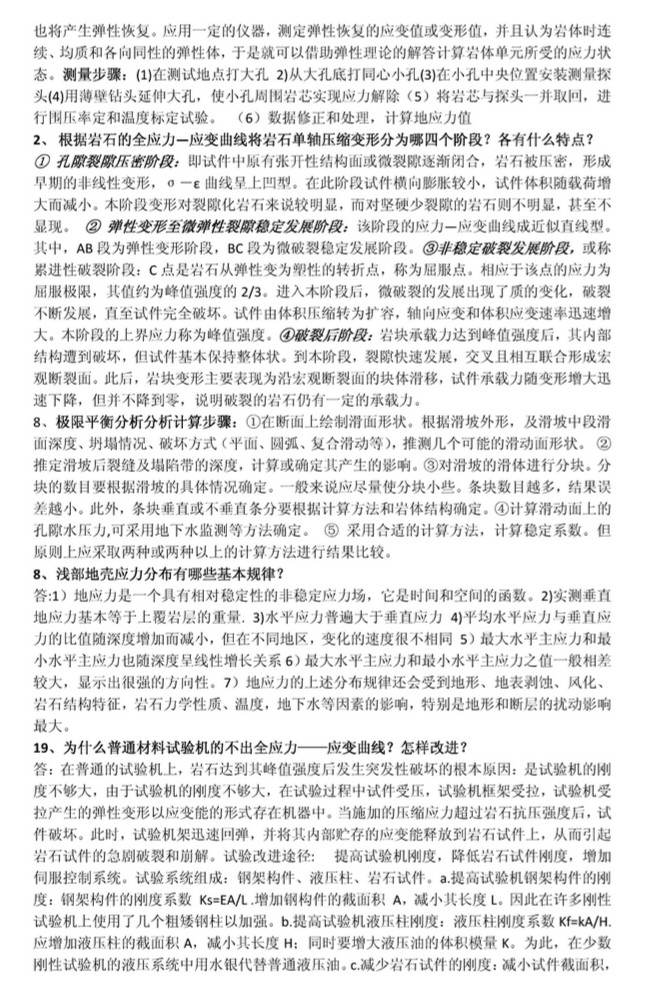 岩石力学考试试题 1、A 2、C 3、C 4、A 5、D 6、A 7、C 8、B 9、A 10、D 1、岩体的强度小于岩石的强度主要是由于( )。 ( A )岩体中含有大量的不连续面 ( B )岩体中含有水 ( C )岩体为非均质材料 ( D )岩石的弹性模量比岩体的大 2、岩体的尺 ...