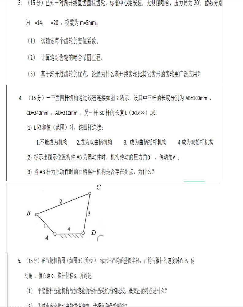 专业课考研资料 本站小编 免费考研网 2015-06-036、设计一曲柄摇杆机构。已知:582AC mm,241AC mm,75CD mm,K=1.5。求曲柄长AB、连杆长BC、机架长AD及摇杆最大摆角。