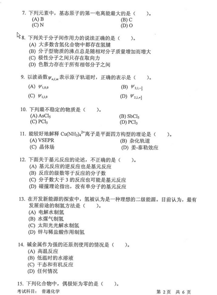 专业课考研资料 本站小编 免费考研网 2015-06-29同济大学2008-2009普通化学期末考试题集锦带参考答案