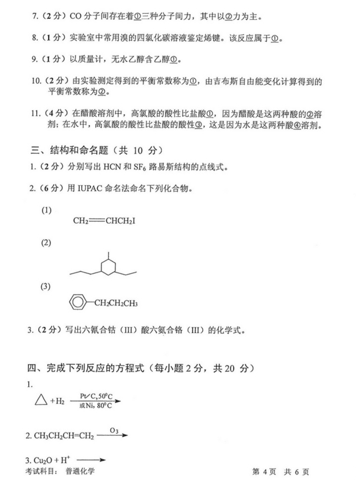 中国科学院南京土壤研究所2012普通化学考研真题(4)