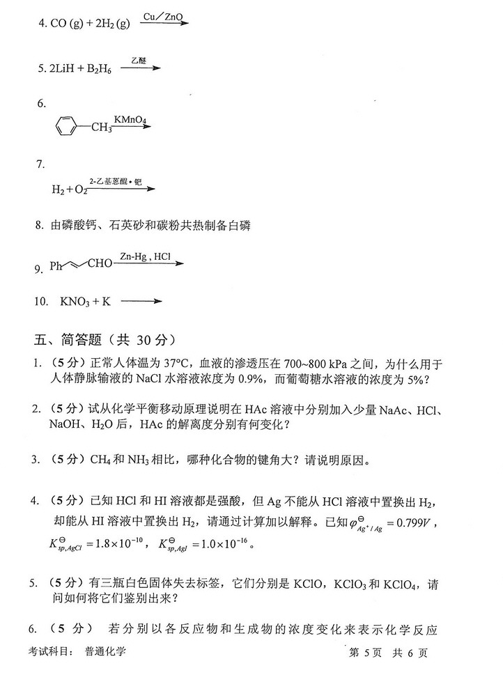 中国科学院南京土壤研究所2012普通化学考研真题(5)
