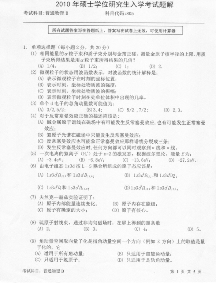 • 南京大学2015普通物理考研真题