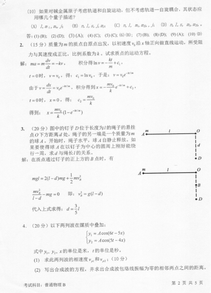 • 南京大学2015普通物理考研真题