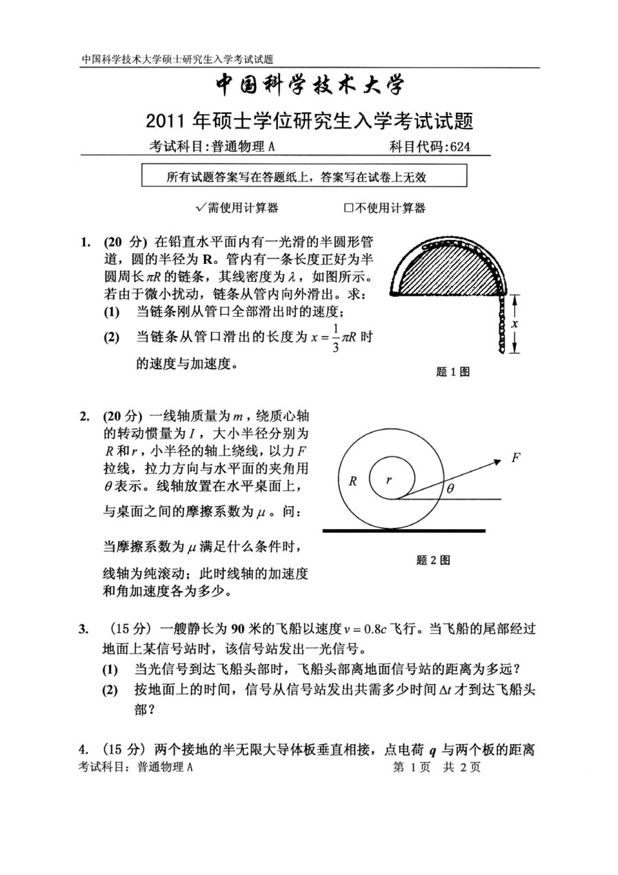 中国科学技术大学2009-2013年考研普通物理学A试卷及答案(14)
