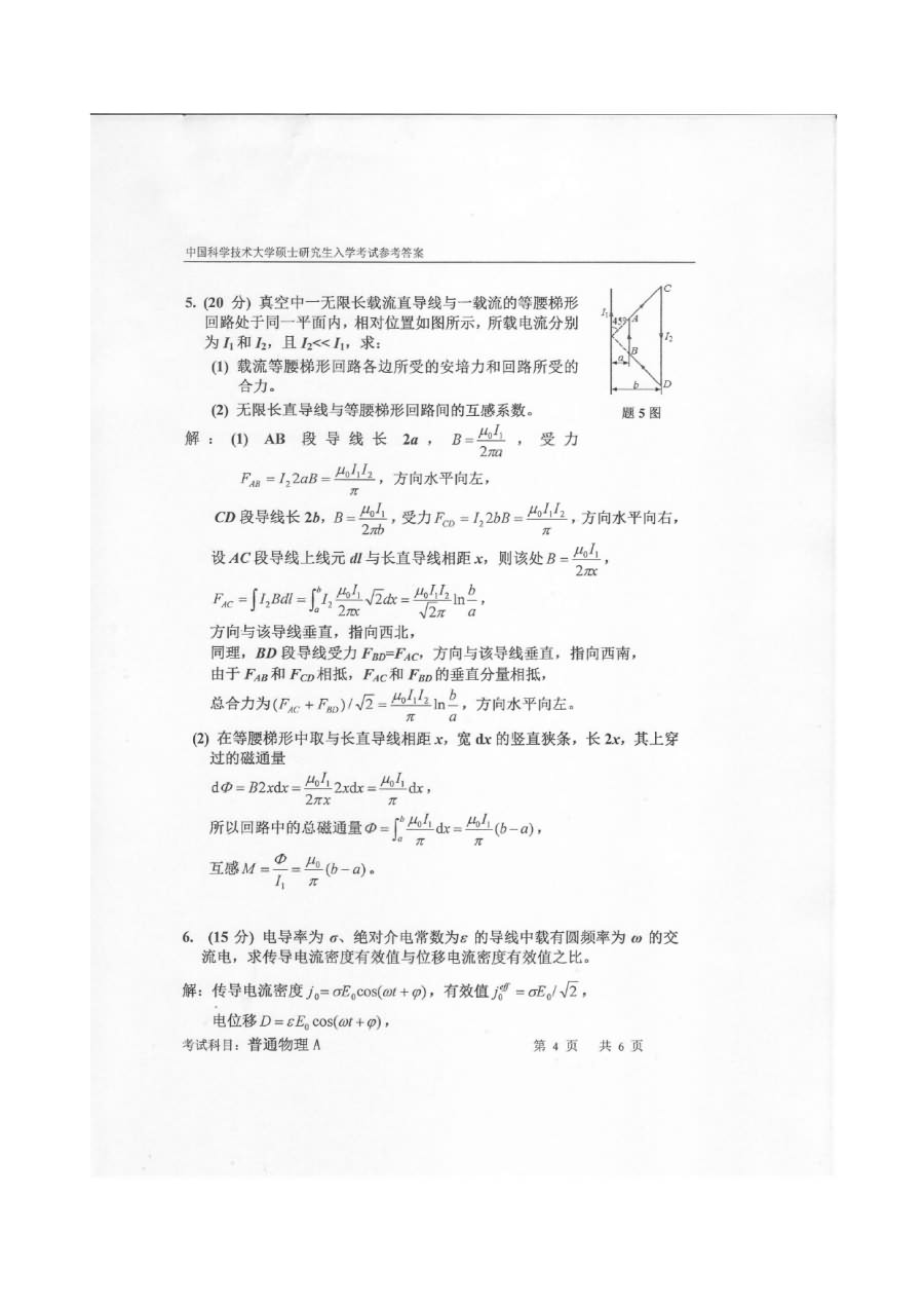 中国科学技术大学2009-2013年考研普通物理学A试卷及答案(20)