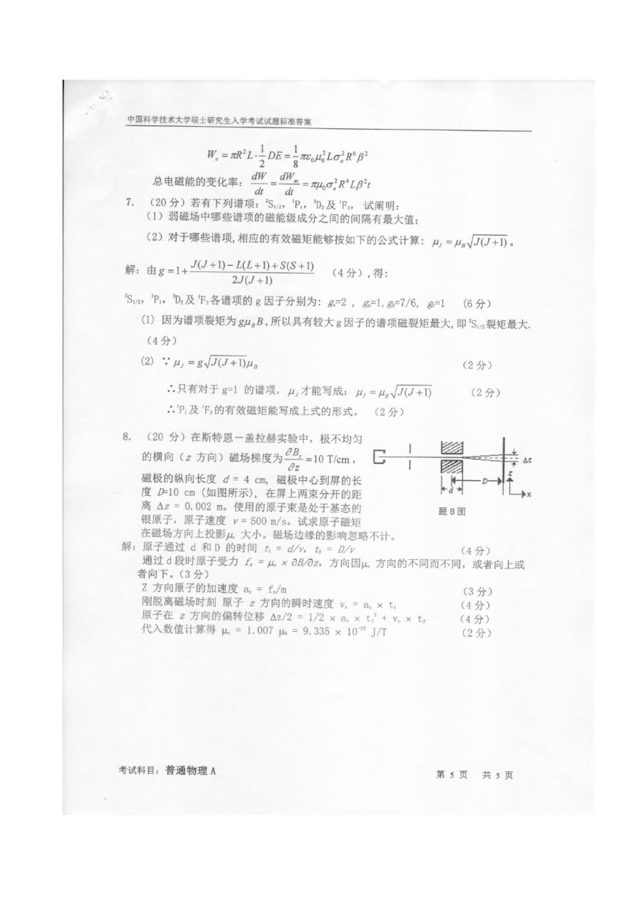 中国科学技术大学2009-2013年考研普通物理学A试卷及答案(5)