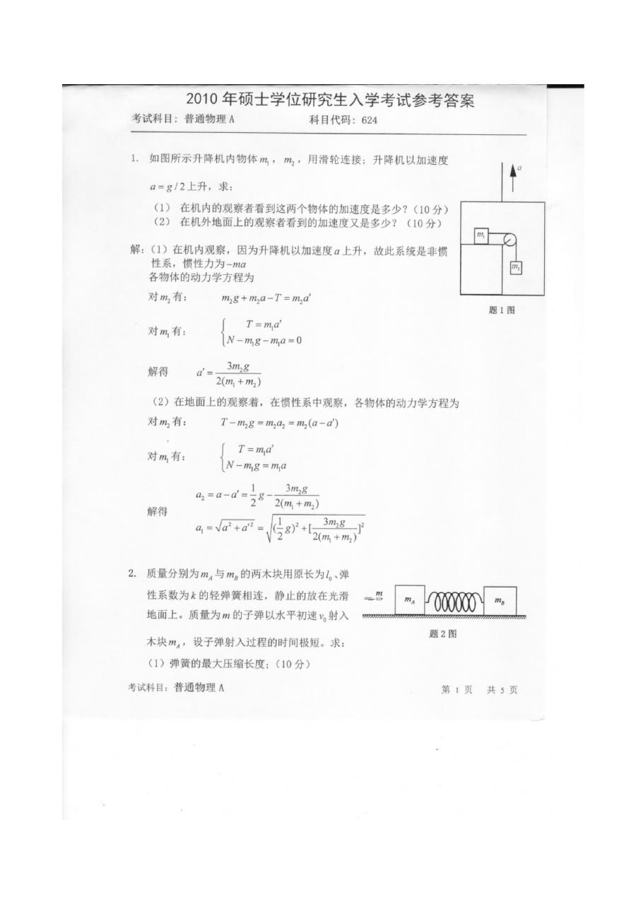 中国科学技术大学2009-2013年考研普通物理学A试卷及答案(9)