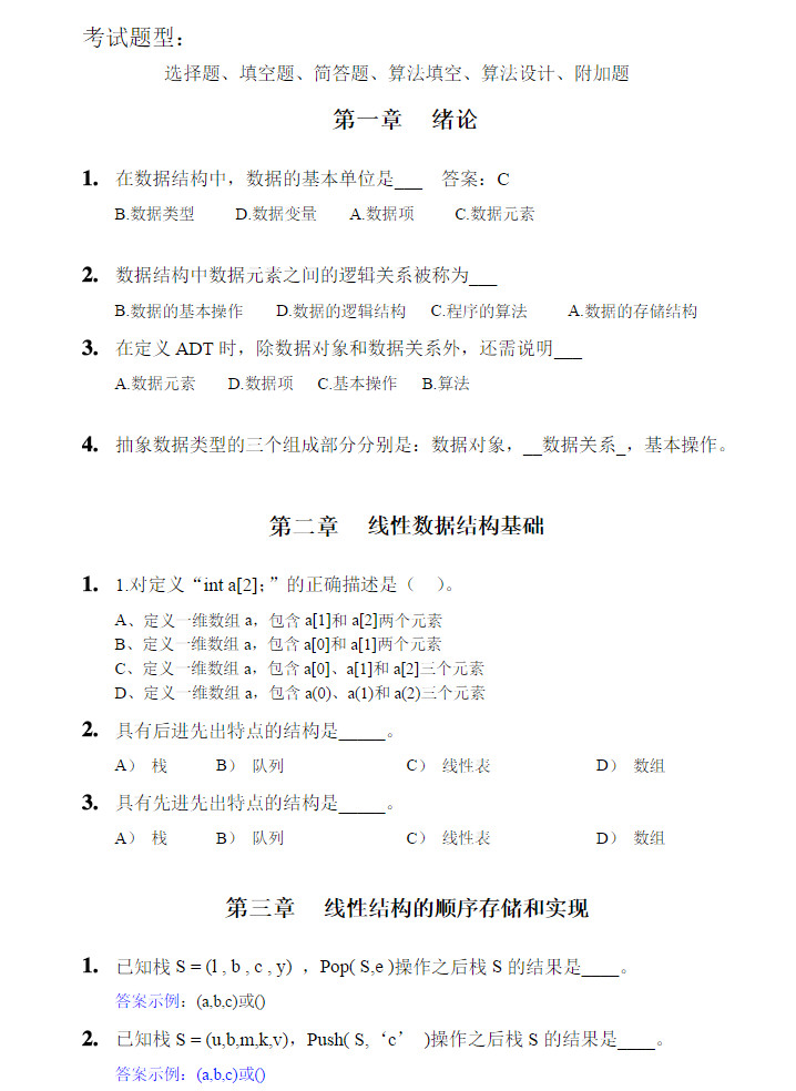 (4) 评价算法的标准,时间复杂度(每年必考,必须知道评价给定的一段程序的时间复杂度)和空间复杂度(这个无所谓)。