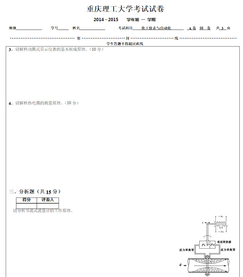 重庆理工大学2014-2015化工化仪表考试题A第一学期考试试卷(2)