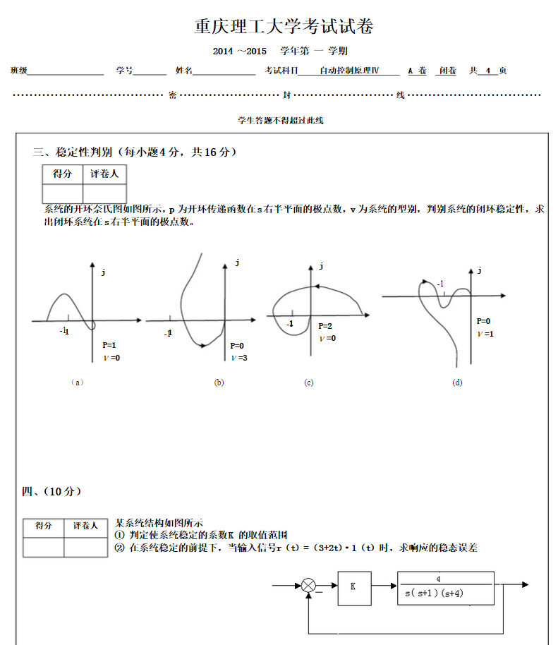 重庆理工大学2014-2015自动控制原理Ⅳ A卷第一学期考试试卷(2)