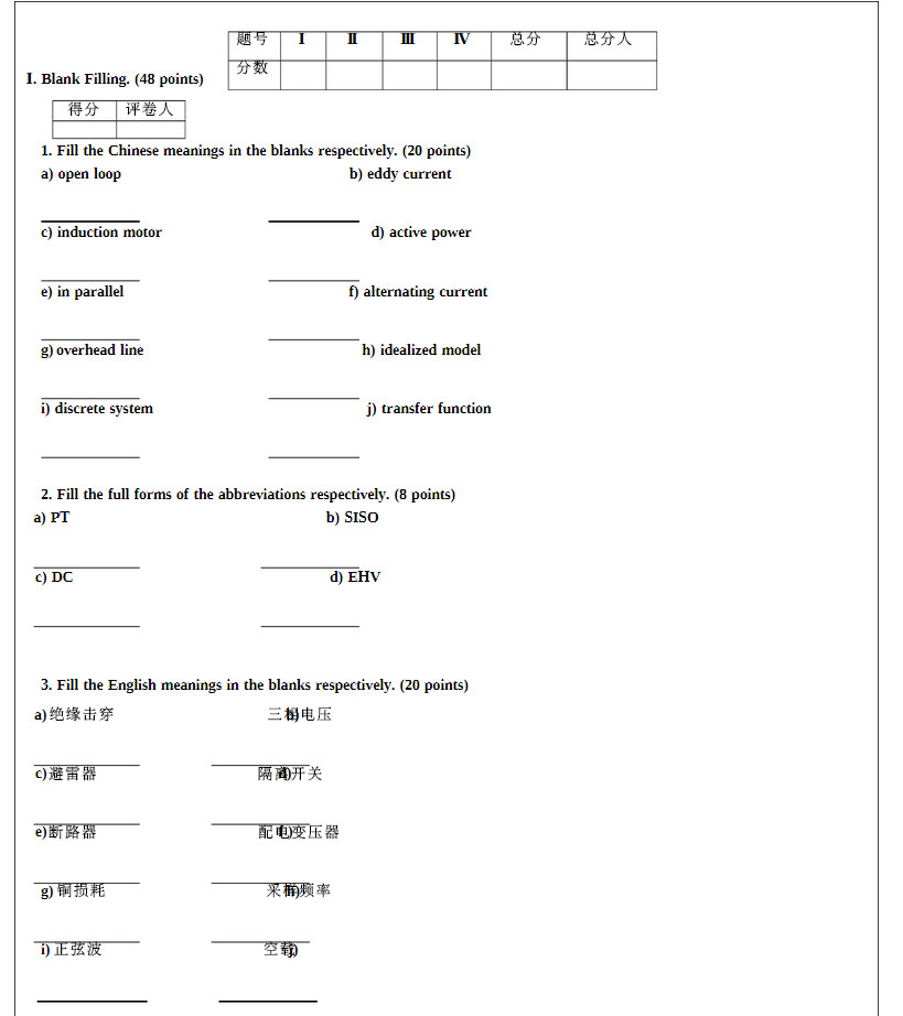 重庆理工大学2014-2015电气工程专业英语试卷A第一学期考试试卷