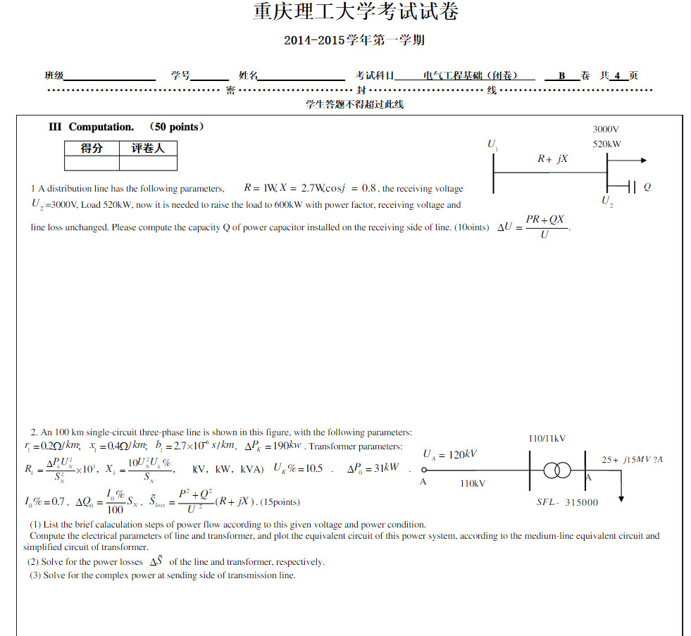 重庆理工大学2014-2015电气工程基础试卷B第一学期考试试卷(3)
