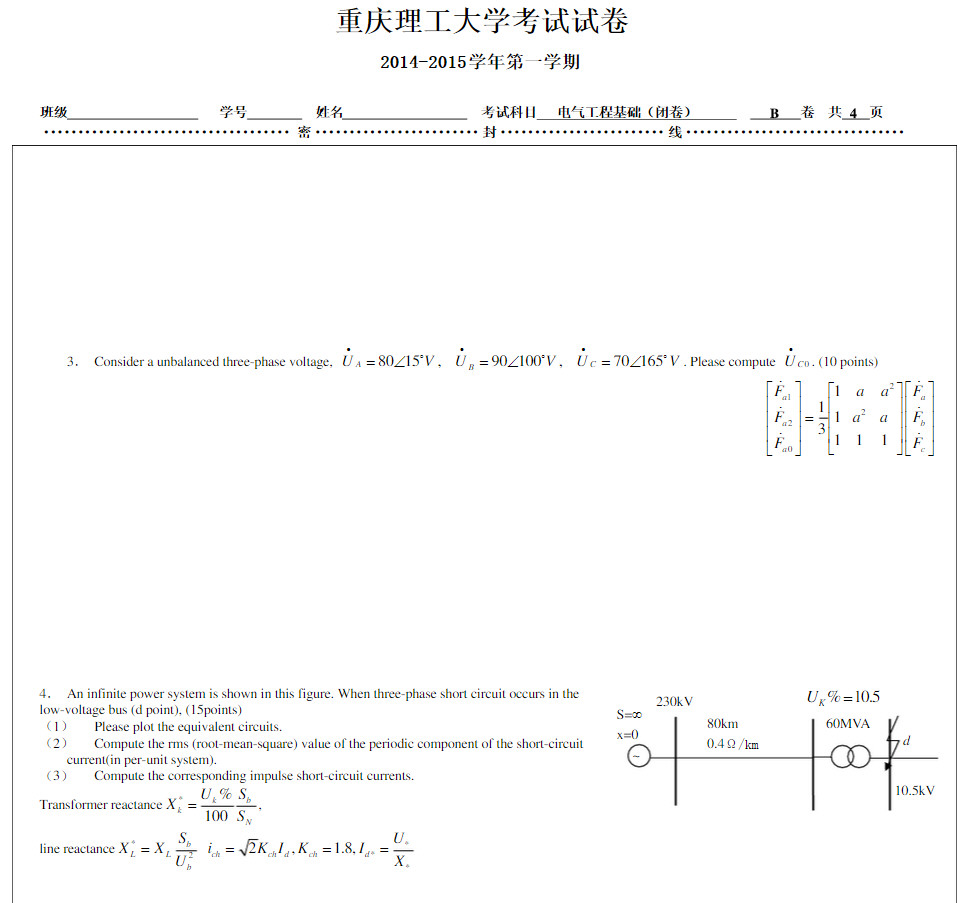 重庆理工大学2014-2015电气工程基础试卷B第一学期考试试卷(4)