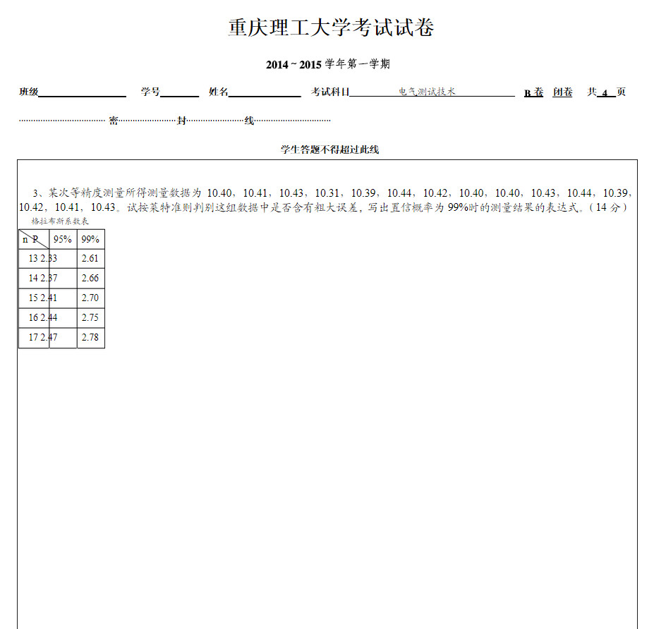 重庆理工大学2014-2015电气测试技术试卷B第一学期考试试卷(4)