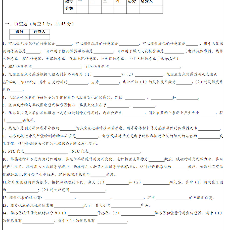 重庆理工大学2014-2015电气测试技术试卷A第一学期考试试卷