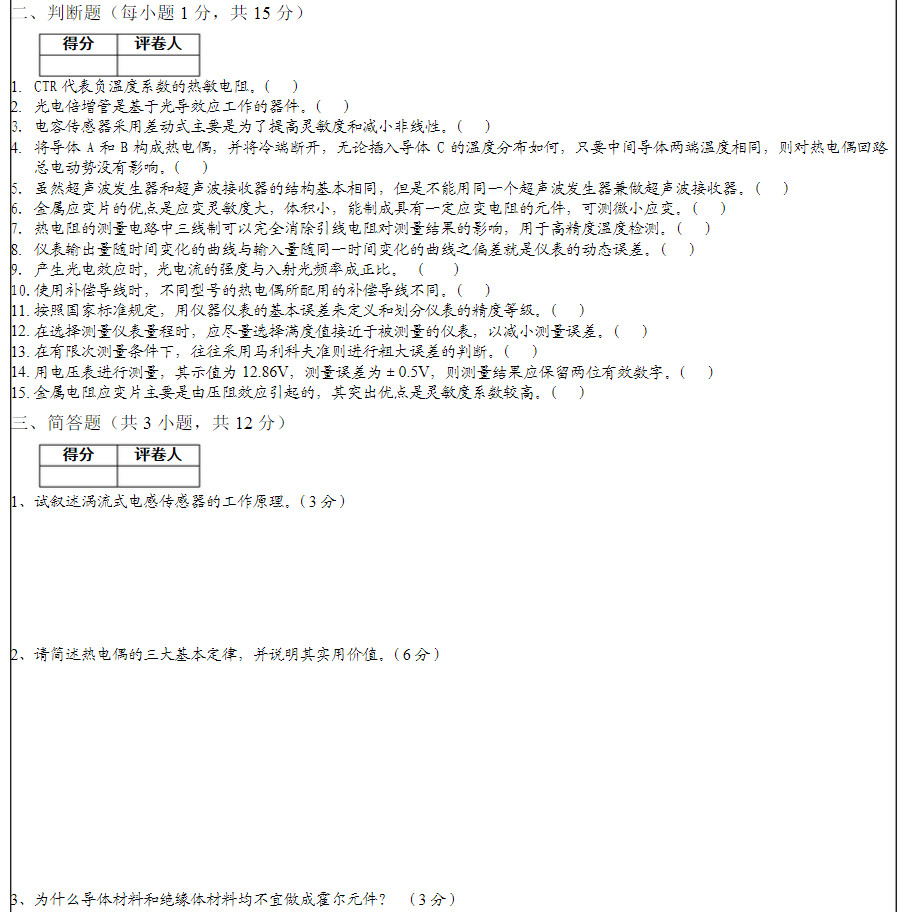重庆理工大学2014-2015电气测试技术试卷A第一学期考试试卷(2)