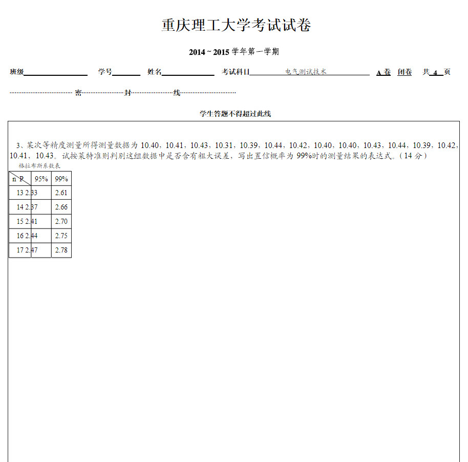 重庆理工大学2014-2015电气测试技术试卷A第一学期考试试卷(4)