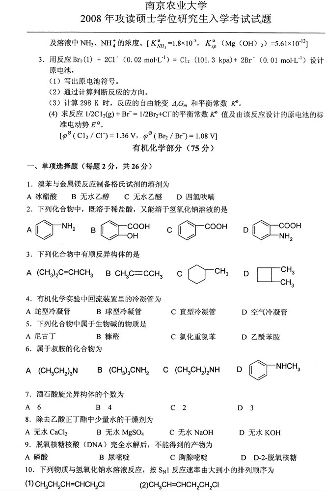 专业课考研资料 本站小编 免费考研网 2015-07-01中国科学院南京土壤研究所2012普通化学考研真题