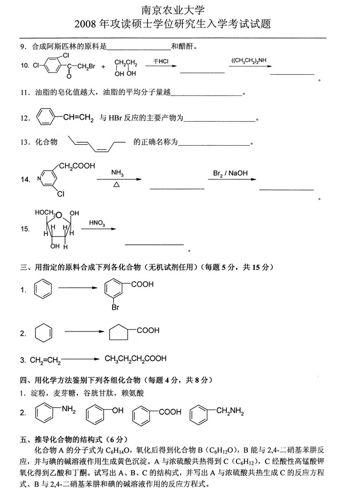 南京农业大学2008年612化学考研真题(5)