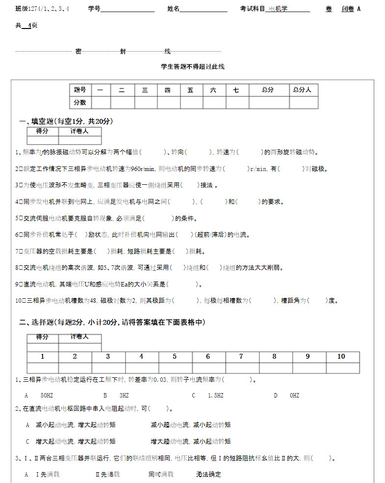 重庆理工大学2014-2015电机学试卷A第一学期考试试卷