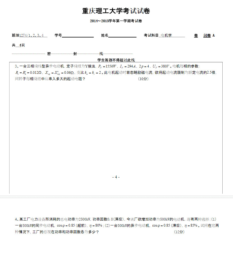 重庆理工大学2014-2015电机学试卷A第一学期考试试卷(5)