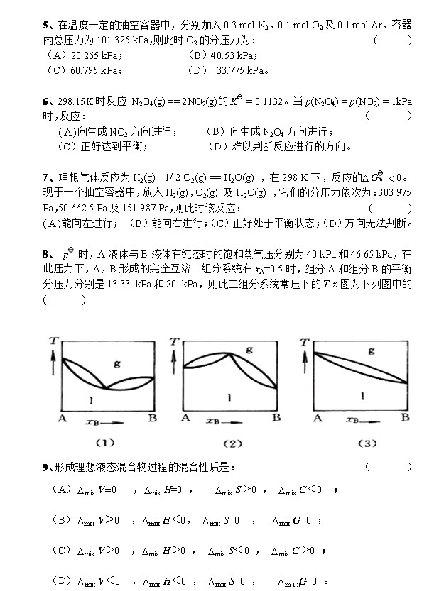 昆明理工大学2011-12上学期物理化学B期末试卷B卷(2)