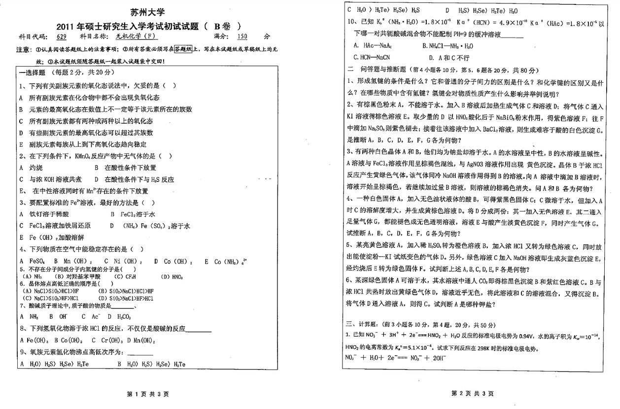 历史学考研资料 本站小编 苏州大学 2015-04-14无机化学期末复习大纲
