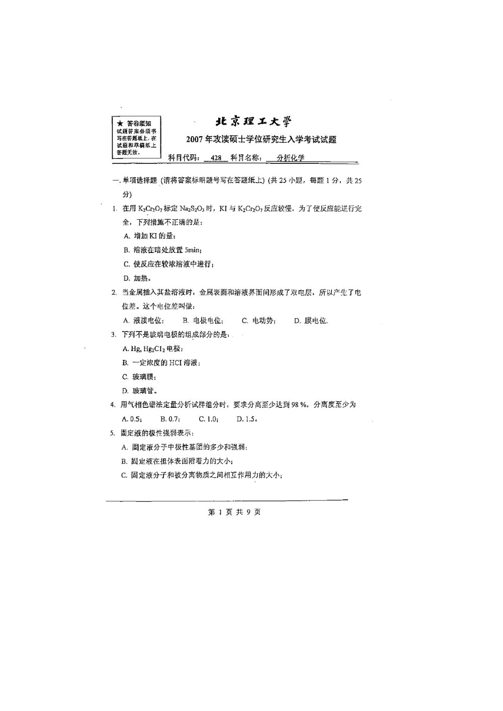 相关话题/北京理工大学 分析化学