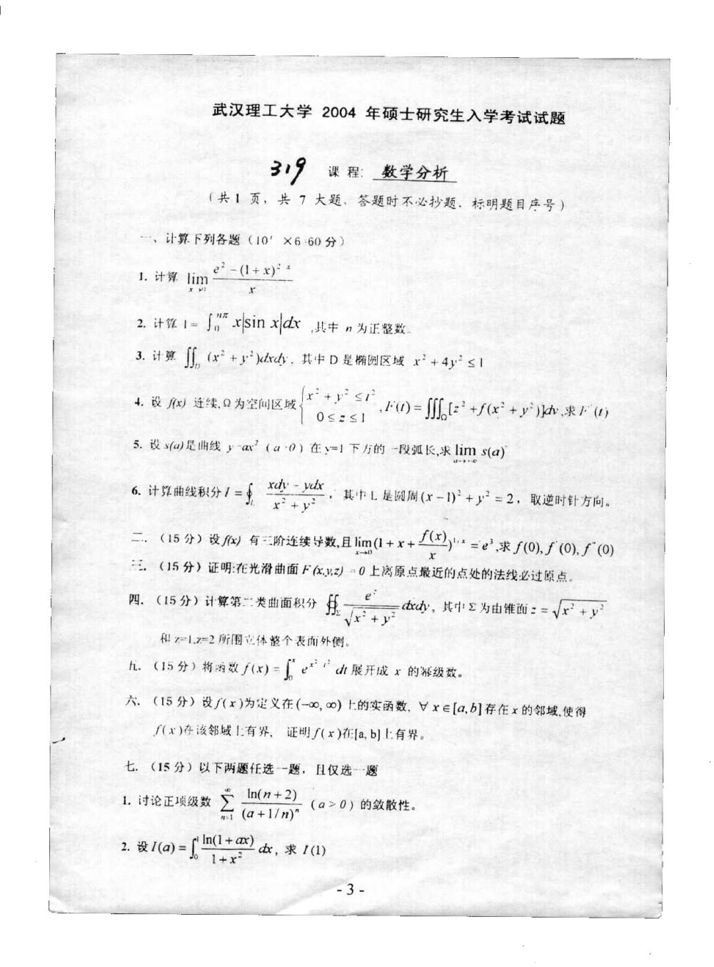 武汉理工大学2002-2010年602数学分析考研试题(4)
