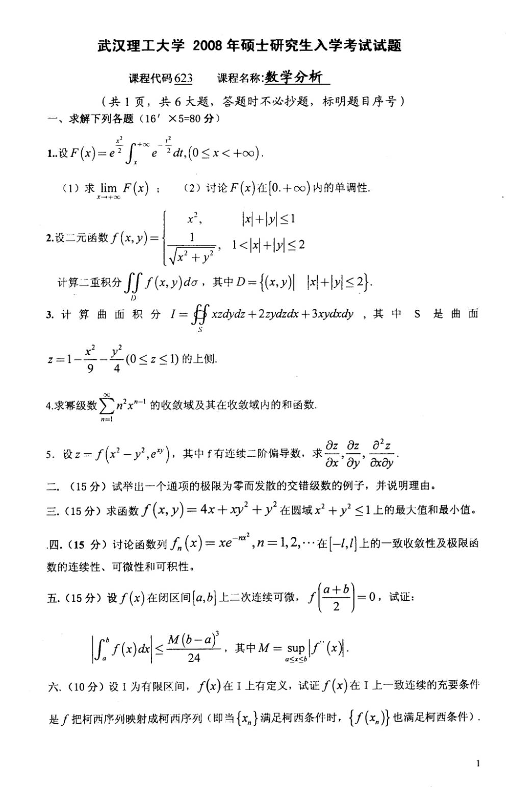 武汉理工大学2002-2010年602数学分析考研试题(8)