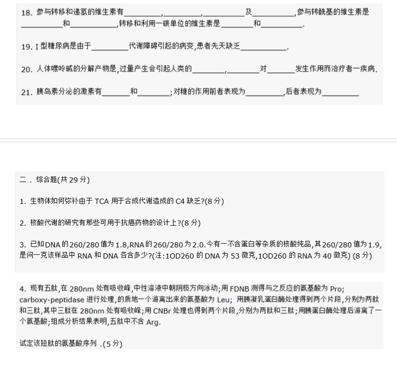 2009复旦大学生物化学考研真题试卷试题