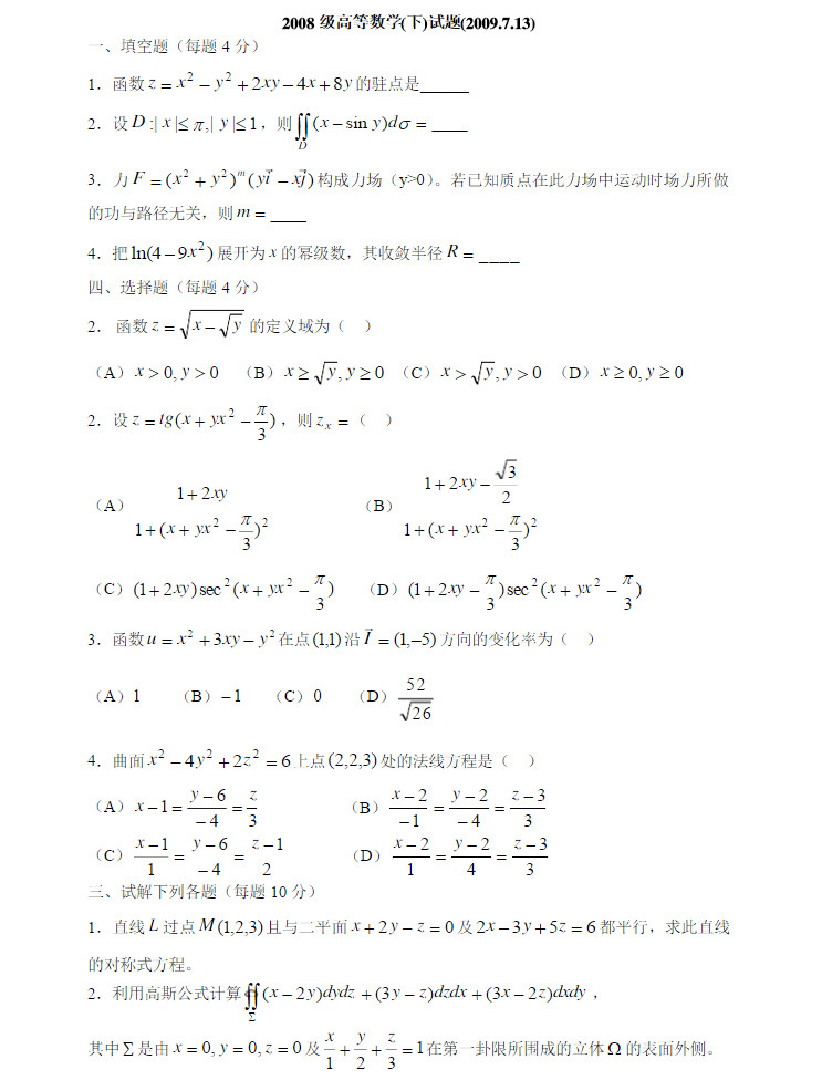 青岛大学2006-2011高等数学期末考试试题(4)