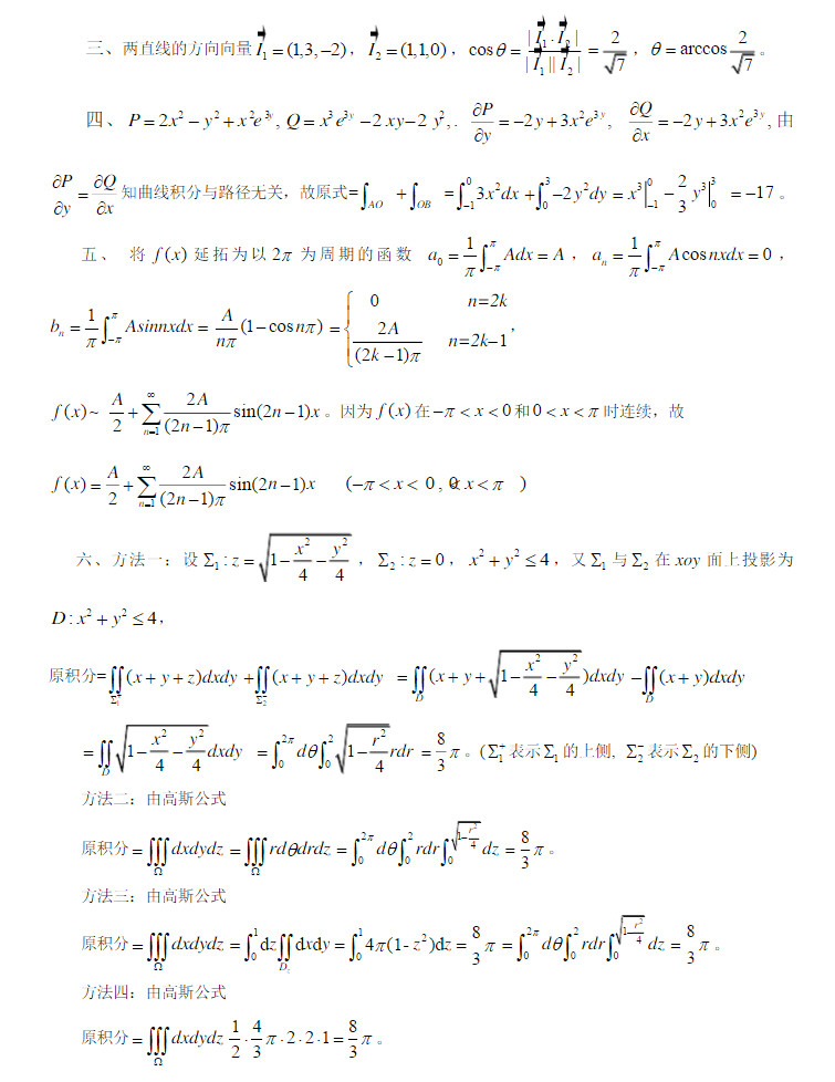 青岛大学2006-2011高等数学期末考试试题答案(2)