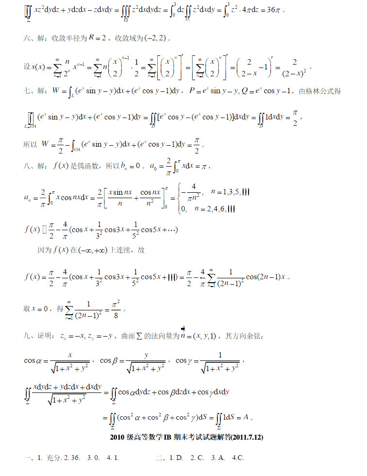 青岛大学2006-2011高等数学期末考试试题答案(5)