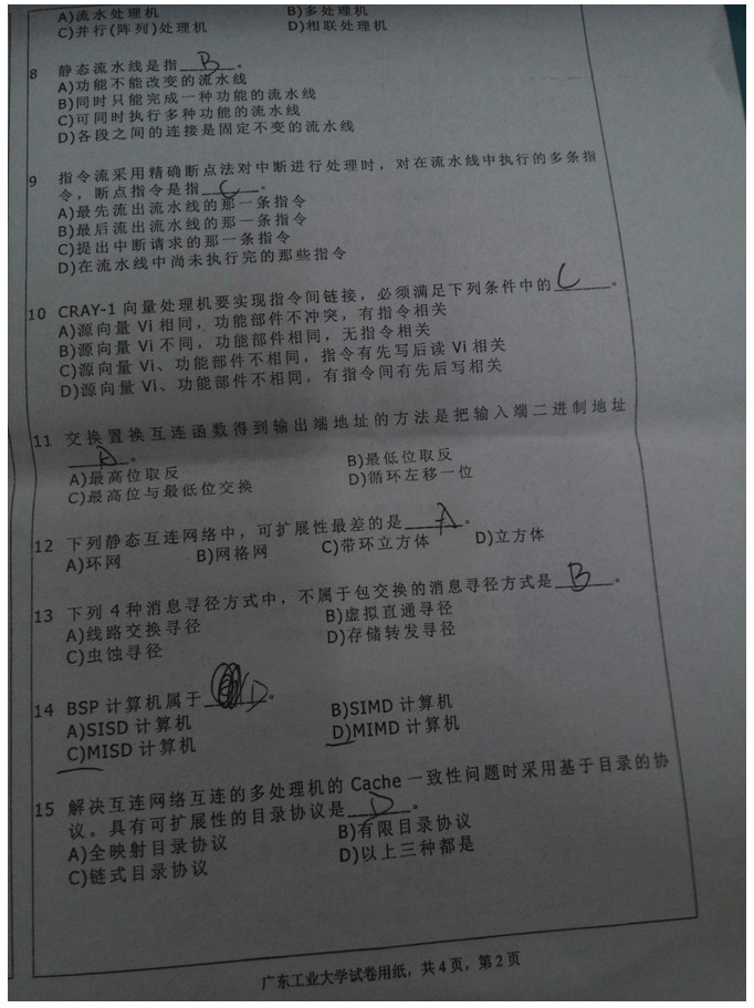 广州工业大学2015年计算机系统结构试卷(2)