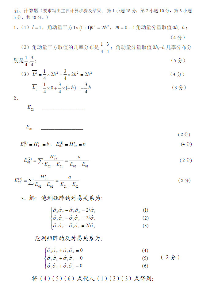 湖北文理学院2011—2012学年度下学期物理系物理学专业 《量子力学》期末考试试卷A(5)