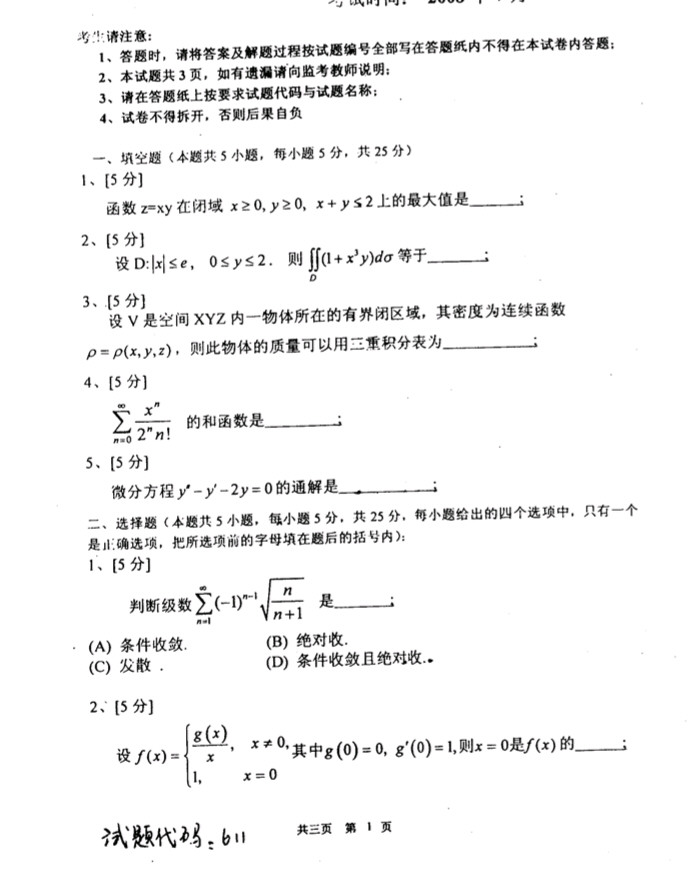 • 青岛大学2006-2011高等数学期末考试试题