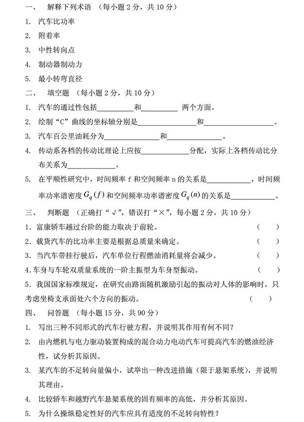 专业课考研资料 本站小编 网络资源 2015-07-13湖南大学《汽车理论》2009年考研复试真题