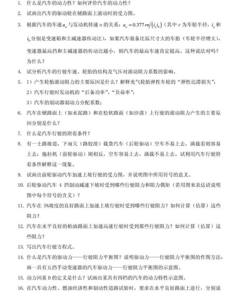 专业课考研资料 本站小编 网络资源 2015-07-13湖南大学《汽车理论》2009年考研复试真题