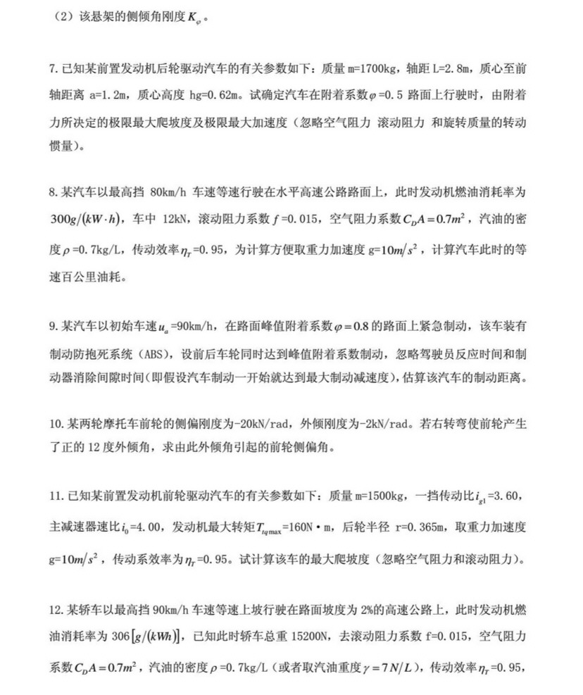专业课考研资料 本站小编 网络资源 2015-07-13湖南大学《汽车理论》2007年考研复试试题