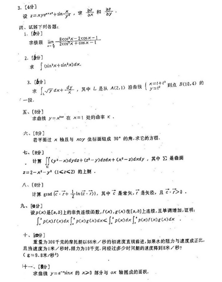 专业课考研资料 本站小编 网络资源 2015-07-12青岛大学2006-2011高等数学期末考试试题答案