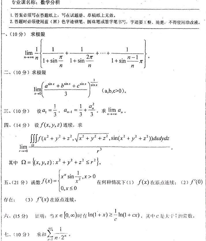 2013年华南师范大学数学分析考研真题(回忆版) ...